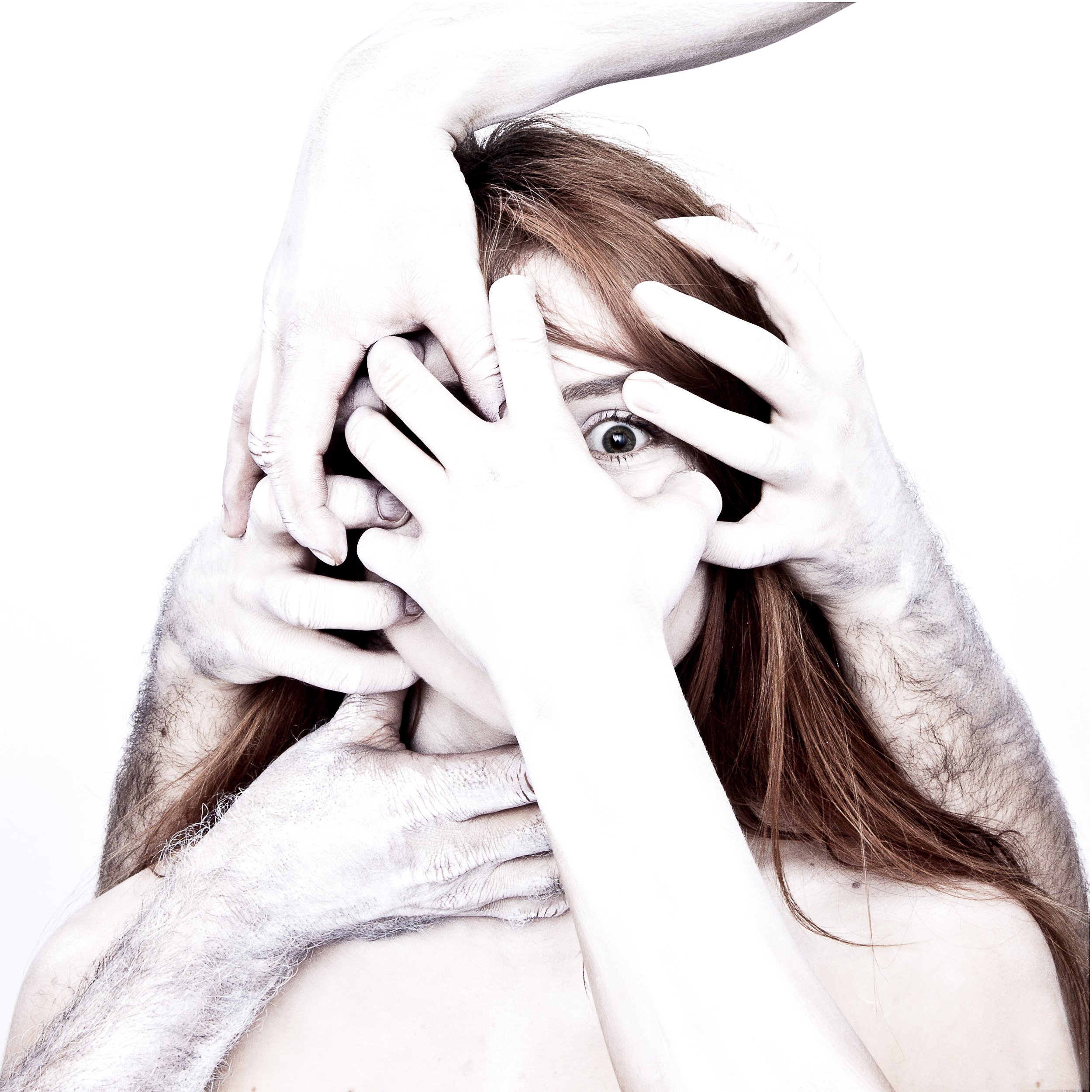 Influences est la métaphore de la manipulation psychique et physique qu’hommes et femmes exercent et subissent. Les visages dans la lumière crue des salles d’opération, agressés par des mains dont l’appartenance reste inconnue.